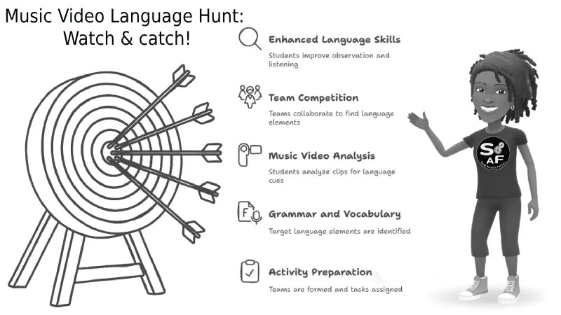 For a detailed lesson plan and printable resources for this activity, check out the full blog post on [Watch & Catch: ESL Lesson with Chart-Topping Music Videos]